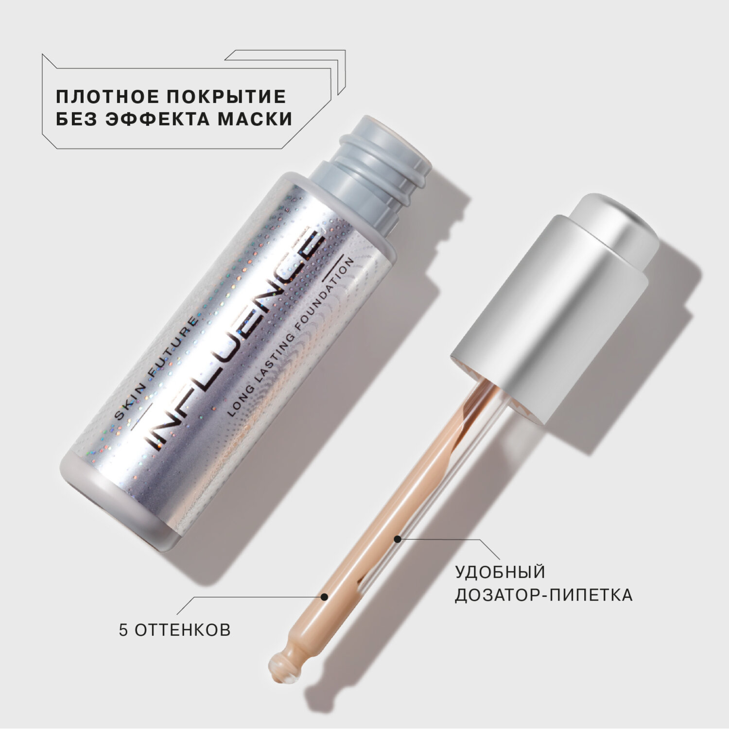 Тональная основа имеет высокие стойкость и пигментацию, но при этом не ощущается на коже и не создаёт эффекта маски.