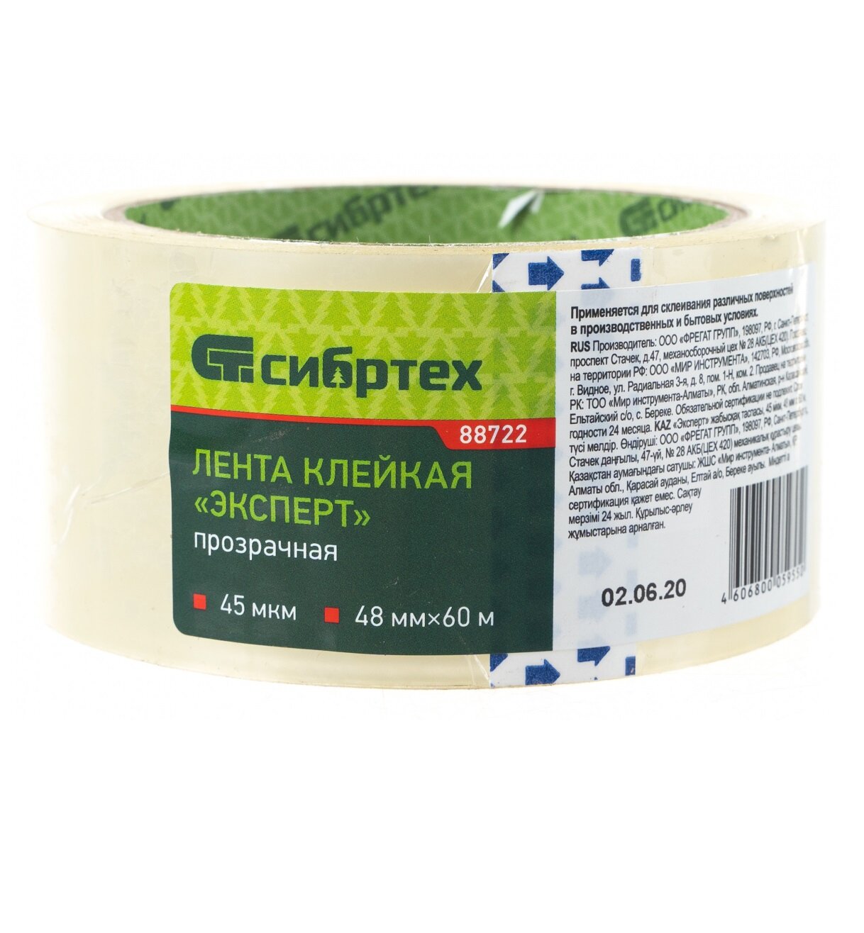 клейкая лента "эксперт" 45 мкм 48 мм х 60 м цвет прозрачный сибртех 88722