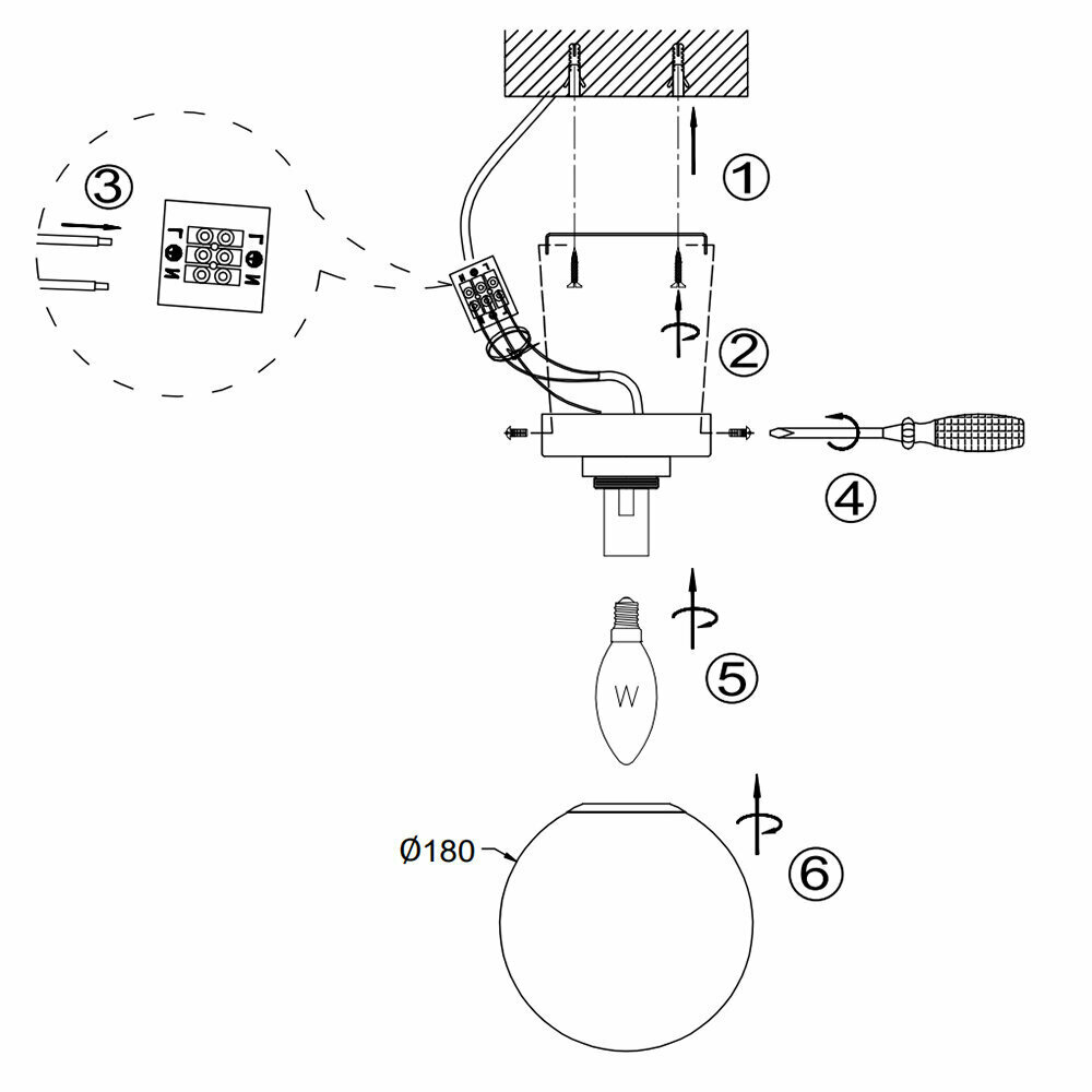- Диаметр плафона: 180 мм.
