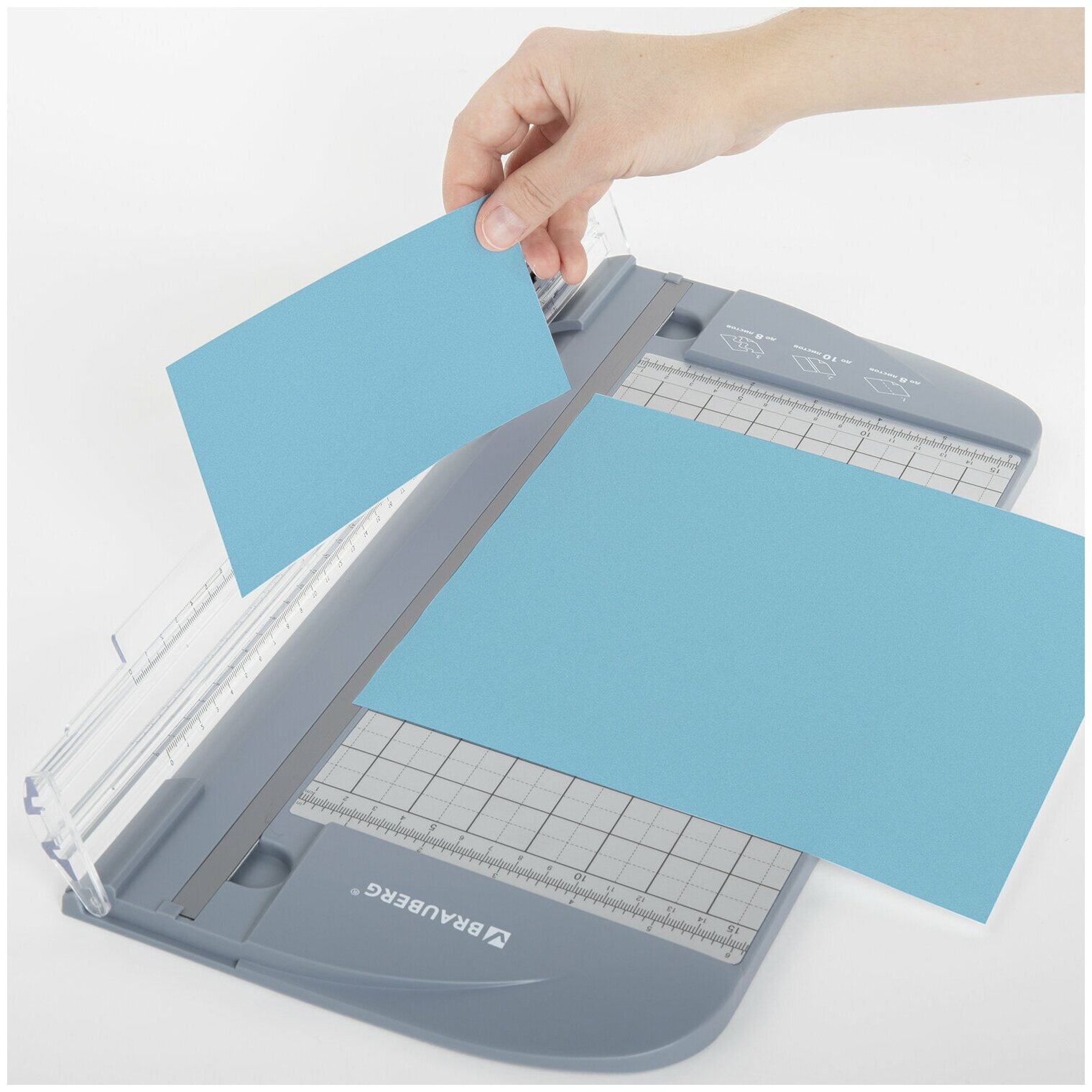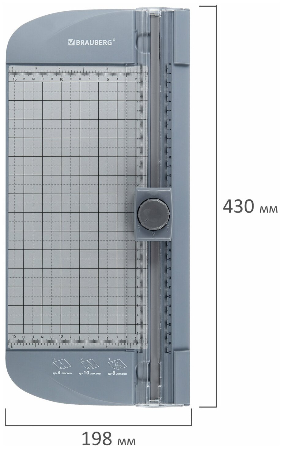 Резак роликовый BRAUBERG используется в скрапбукинге, в оформительских работах и других видах творчества, а также при работе с документами и фотографиями. Максимальный формат - А4 (210×297 мм). Оснащен острым стальным безопасным лезвием (скрытый нож - выдвигается только при нажатии) с длиной реза 310 мм. Выполняет ровную прямую резку бумаги в обе стороны. Максимальное количество одновременно разрезаемых листов А4 плотностью 80 г/м2 при прямом типе резки - 10 шт., при перфорированном типе резки - 8 шт., при волнистом типе резки - 8 шт. Подходит для резки офисной бумаги, тонкого картона, бумаги для скрапбукинга, фотобумаги, цветной бумаги и т. д. Корпус резака изготовлен из качественного HIPS пластика, который обеспечит долгую службу изделия. Вдоль линии реза нанесена шкала с миллиметровыми, дюймовыми делениями и градусной сеткой, которая обеспечит необходимую точность нарезки бумаг. Наличие резиновых ножек не позволяет изделию скользить по поверхности рабочего стола. Особая функция представленного резака - возможность выбрать необходимый тип реза для различных задач. Резак роликовый BRAUBERG для дополнительной фиксации бумаги оснащен прижимом листов, что значительно улучшает качество реза. В комплекте гарантийный талон. У представленного резака компактный размер, благодаря этому он удобен при хранении и транспортировке. Приобрести сменные лезвия и сменные маты для резака роликового BRAUBERG можно на нашем сайте! Артикулы: 532333, 532335.