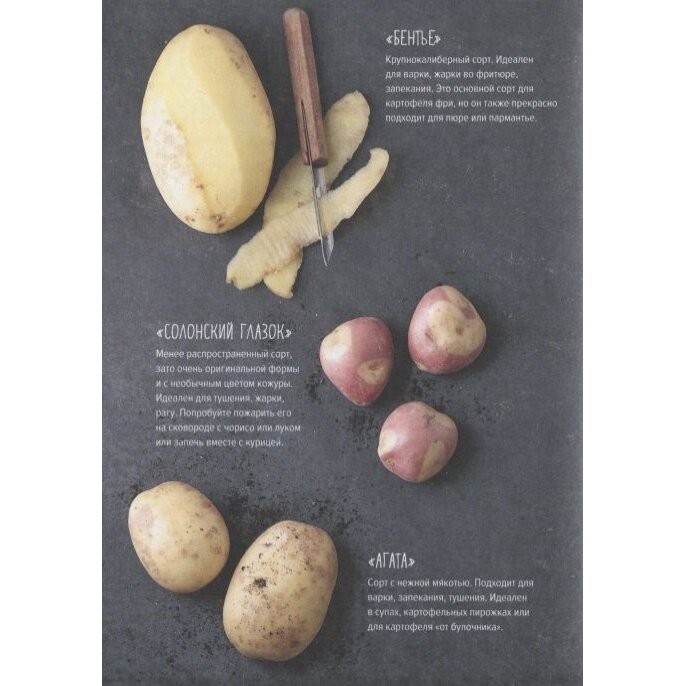 Картофель - необычайно универсальный корнеплод: из него можно приготовить множество сытных блюд на любой случай. В этой книге вы найдете и классические рецепты, и необычные вариации, доказывающие, что даже из простой картошки может получиться кое-что особенное. Карпаччо из картофеля на пару с маринованным лососем по-тайски или пармантье с уткой и вяленым инжиром украсят любой праздничный стол, нежные крокеты и супы-пюре придутся по вкусу малышам, холодный картофельный террин с сардинами и соленым лимоном порадует гурманов, картофельные котлетки с грибами станут хитом на пикнике или дружеской вечеринке, тающее во рту картофельное суфле удивит изысканностью, а вариации домашних чипсов и картофеля фри станут более полезной альтернативой покупному фастфуду.