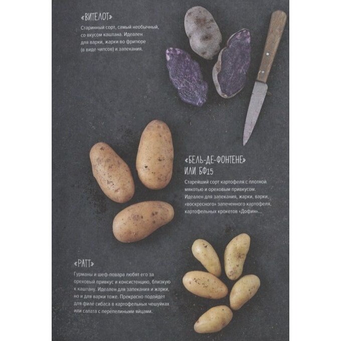 Прекрасно оформленная книга и яркими, аппетитными фотографиями. Помимо рецептов в книге дана информация о сортах картофеля, даны базовые рецепты приготовления картофеля, а так же рецепты соусов для картофеля. Рецепты более изящных блюд подробные, с примечаниями, а так же снабжены фотографиями. Книга станет прекрасным подарком и любителю картофеля, и просто любителю готовить. Рекомендую! Оценка: 5.