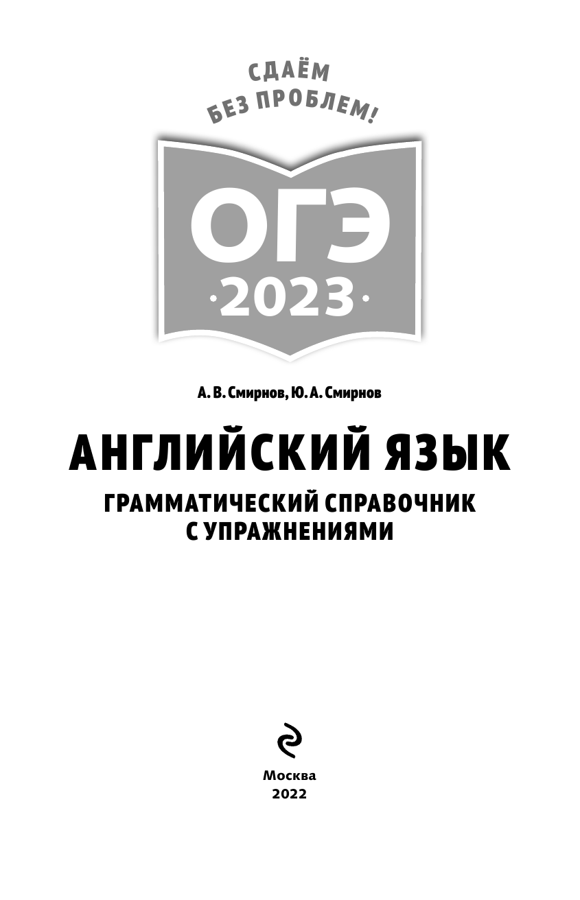 ОГЭ-2023. Английский язык. Грамматический справочник с упражнениями (Смирнов Юрий Алексеевич (соавтор), Смирнов Алексей Валерьевич); Эксмо, 2022