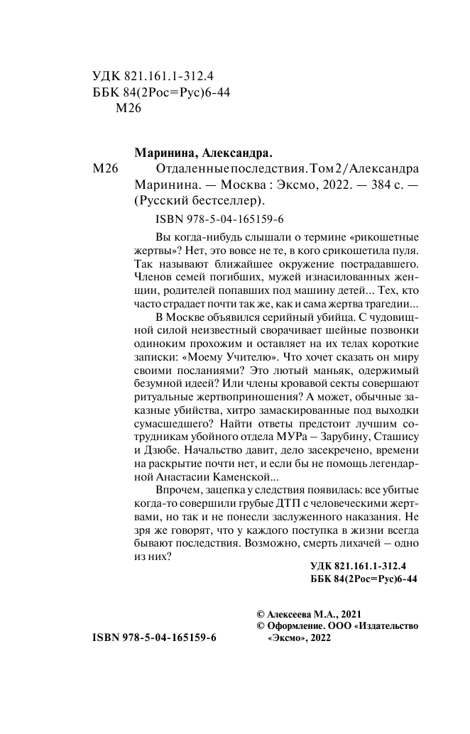 Отдаленные последствия. Том 2 (Маринина Александра Борисовна); ООО "Издательство "Эксмо", 2022