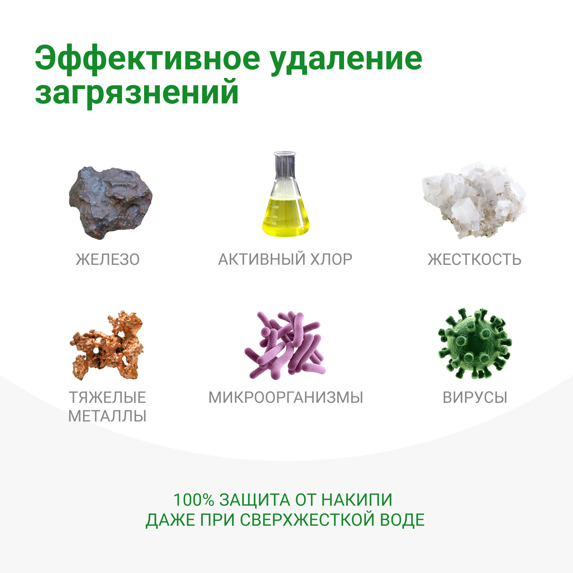 | Эффект | Обезжелезивание,Очистка от песка,Очистка от ржавчины,Очистка,Очистка от нефтепродуктов,Очистка от пестицидов,Очистка от свинца,Очистка от хлора,Умягчение,Удаление вирусов и бактерий,Улучшение вкуса |