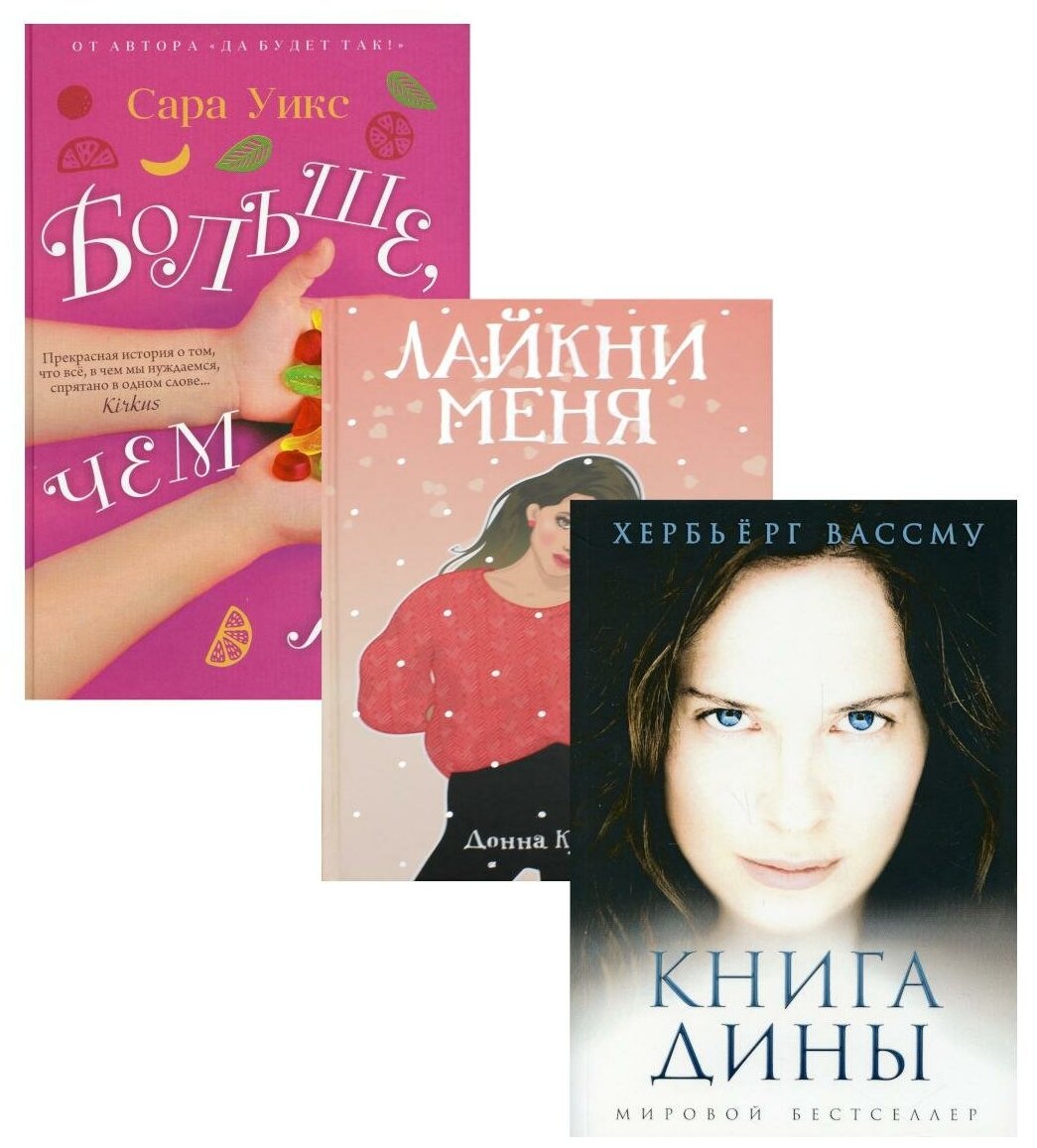 Комплект "Все про любовь. Вып. 1" содержит книги: "Книга Дины" Жизнь Дины, будущей хозяйки поместья Рейнснес, начиналась непросто. Но красавица с твердым характером сумела выдержать все удары судьбы и, приняв решение, никогда не оглядывалась назад. Ее история, которую по праву называют скандинавской вариацией "Унесенных ветром", послужила основой для известного фильма "Я - Дина" с участием Марии Бонневи и Жерара Депардье. "Лайкни меня" "Лайкни меня" - потрясающе увлекательная книга одной из самых известных американских писательниц. В школе, где учится Линден, у каждого ученика установлено популярное приложение. С его помощью можно высказать мнение о недостатках некоторых учениц, лайкнуть фотографию влюбленной пары и проголосовать: подходит ли эта девушка парню или нет? Линден встречается с Алексом, но их отношения резко меняются после того, как девушка устанавливает на свой смартфон это приложение. "Больше, чем я" "Хайди всегда приносила нашей семье удачу" - вот, что с детства