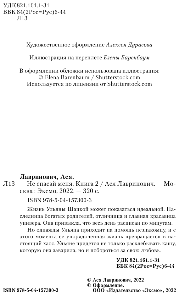 Книга: Не спасай меня. Книга 2 (Ася Лавринович); Эксмо, Like Book, Редакция 1, 2025
