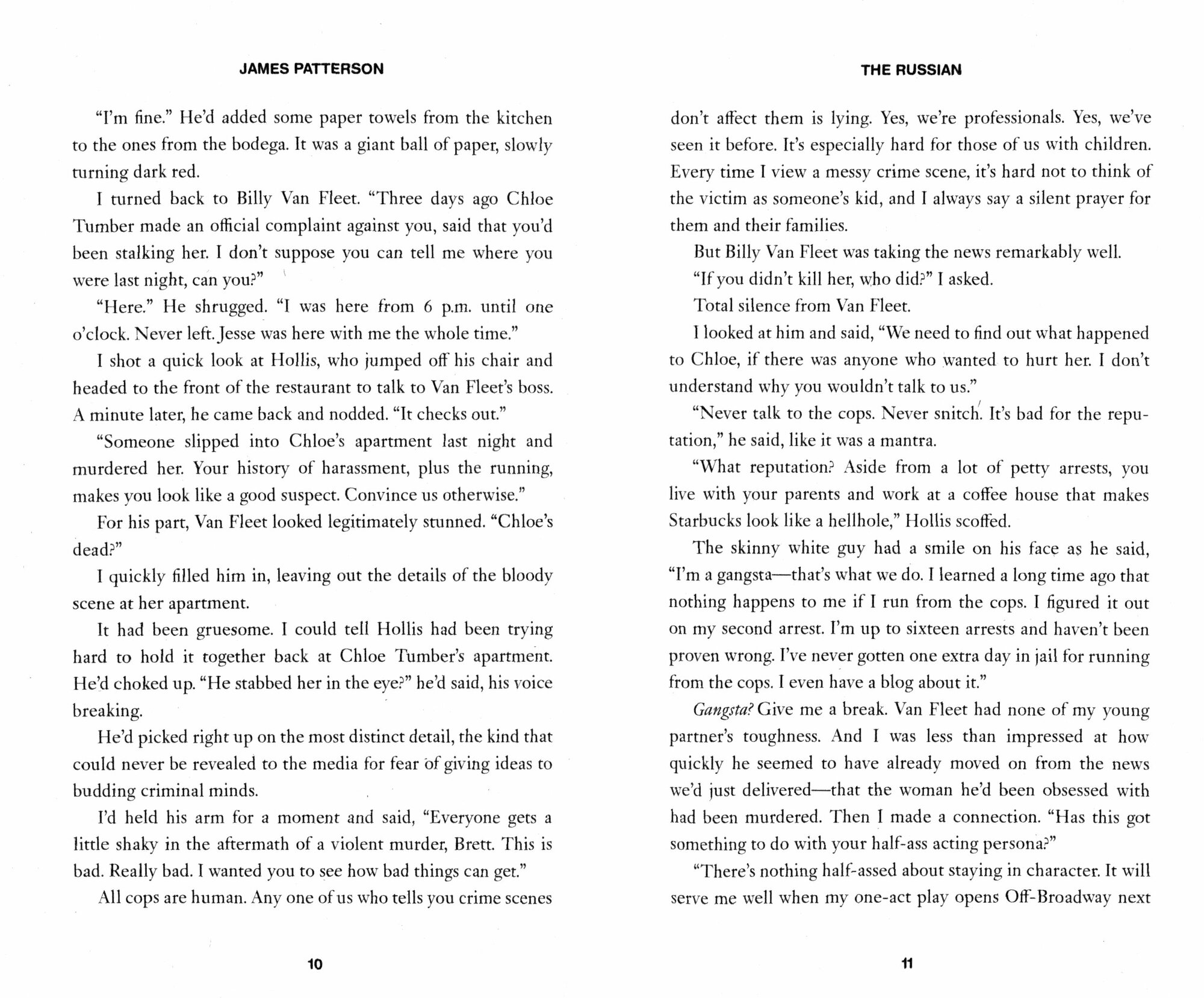 Серия ужасных, кровавых убийств волной проходит по Нью-Йорку. Расследование занимает все время детектива Майкла Беннета, но когда его напарник получает травму, Беннетт понимает, что нужно быстрее закончить эту игру. Сопоставление убийств в Нью-Йорке с аналогичными в Атланте и Сан-Франциско не составило труда. Но сможет ли следование подсказкам и работа более усердная, чем когда-либо, принести детективу ответы? «Русский» - 13-й роман в серии Джеймса Паттерсона и Джеймса О. Борна о Майкле Беннетте. И это было блестяще.