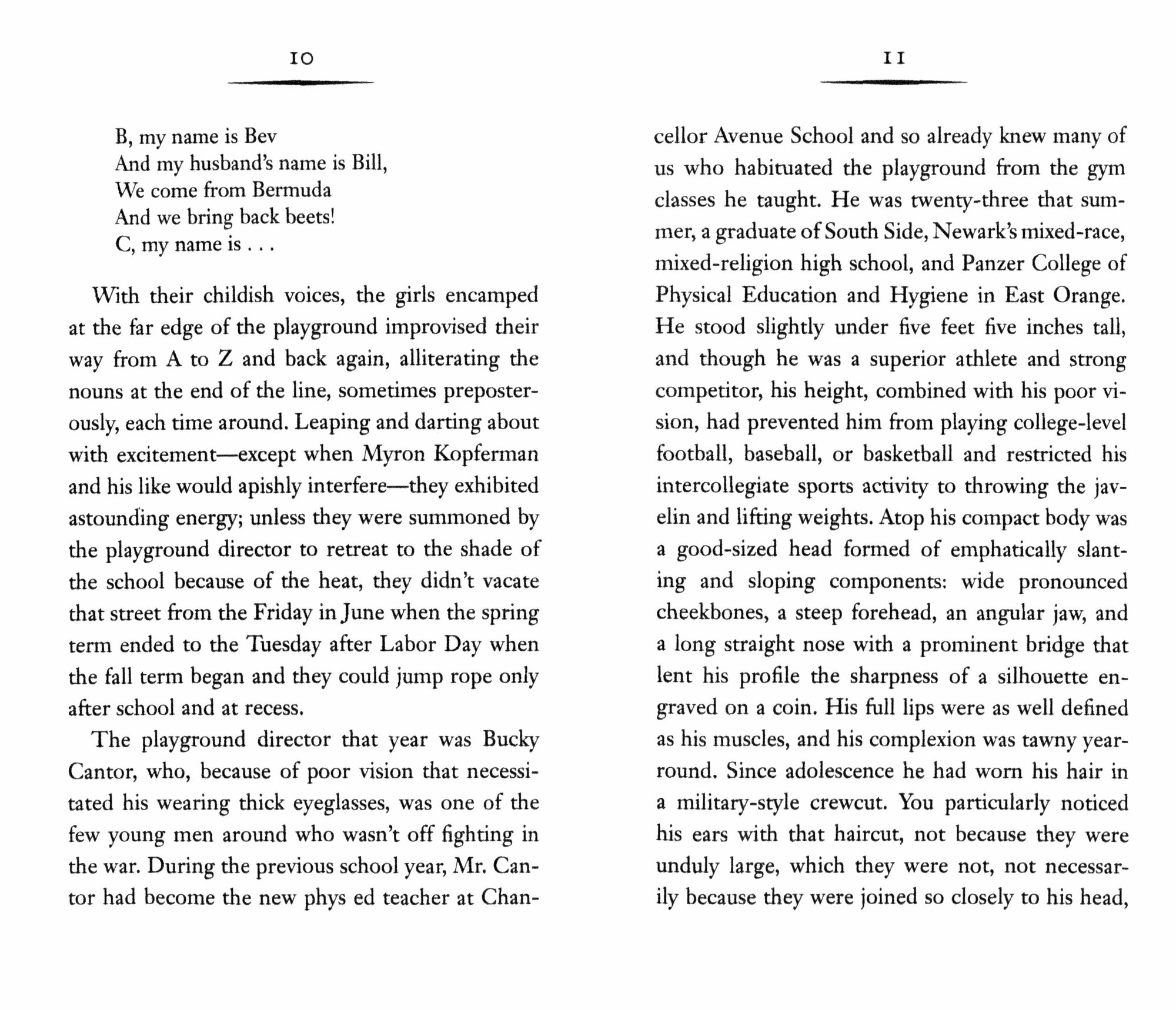 Set in a Newark neighborhood during a terrifying polio outbreak, Nemesis is a wrenching examination of the forces of circumstance on our lives.