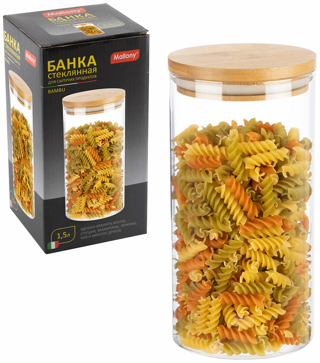 Благодаря своему объему и прочной конструкции, банка Mallony Bambu поможет оптимизировать процесс хранения, обеспечивая легкий доступ к продуктам и поддерживая порядок на кухне. Это не просто контейнер для хранения – это элемент, который улучшает качество жизни, делая ежедневные задачи проще и приятнее.