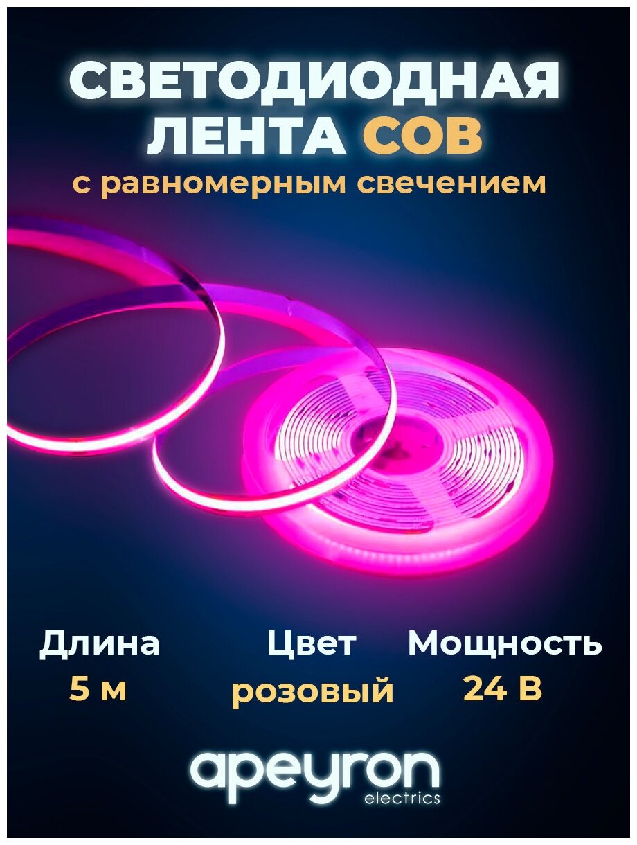 На сегодняшний день товар «Светодиодная лента Apeyron 14W/m 512Led/m COB розовый 5M 00-364» можно купить с кешбеком в 1 магазине: Яндекс.Маркет
