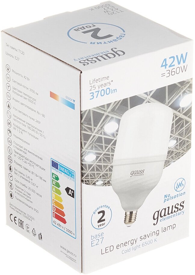 Лампочка светодиодная Elementary Promo T120 40W E27/E40 - продукт известной компании Gauss (Россия). Имеет максимальную мощность 40 Вт. Впишется в интерьеры следующих стилей: современный.