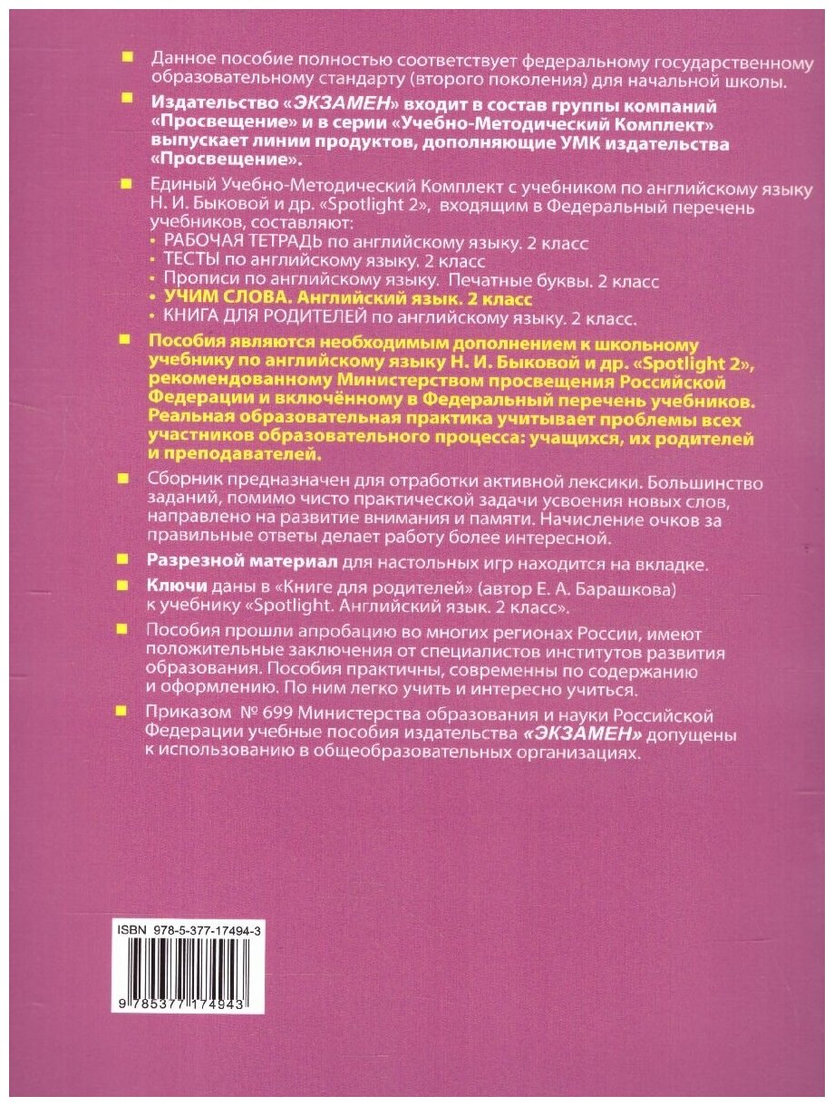 Английский язык. 2 класс. Учим слова. К учебнику Н. И. Быковой и др. (Барашкова Елена Александровна); Экзамен Издательство, 2023