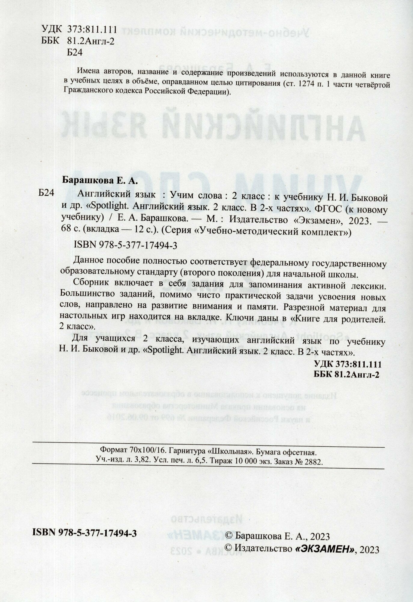 Сервис сравнения цен СкидкаГИД предлагает сравнить цены на товар «Книга: Английский язык. 2 класс. Учим слова. К учебнику Н. И. Быковой и др. (Барашкова Елена Александровна); Экзамен Издательство, 2023»