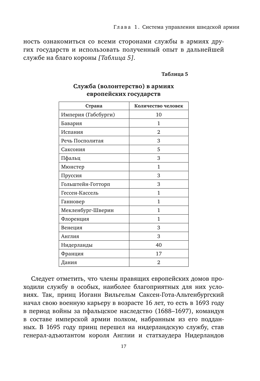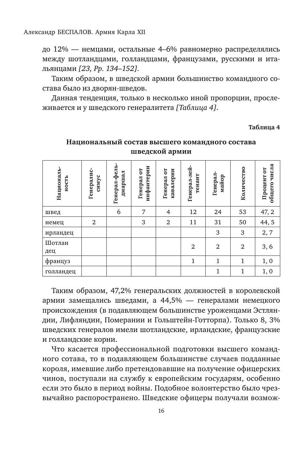 С содержанием книги еще не успел подробно ознакомиться. Беглый просмотр оставил неоднозначное впечатление. Некоторые заявления внушают опасения, например, Меншиков был из знатного чешско-польско- литовского рода IX века времен Рюрика! Вместе с тем, увидел достаточно подробные описания сражений у Фрауштата и Гемауэртгофа, неудачных для русских и потому непопулярных в отечественной историографии. Большая вводная глава о становлении шведской армии, пересказ событий Северной войны, главы об отдельных шведских генералах, пожалуй самые информативные. Есть статистические таблицы по снабжению армии, но четко выделенного описания структуры, тактики пока не увидел. В конце ОПИСАНИЕуниформы разных полков. Угнетает полное отсутствие карт, и цветных иллюстраций, текст сопровождается мелкими и нечеткими гравюрами, фото портретов и артефактов. Книга для больших любителей темы, и неизвестно, добавит ли она им информации, соразмерно немалой цене.