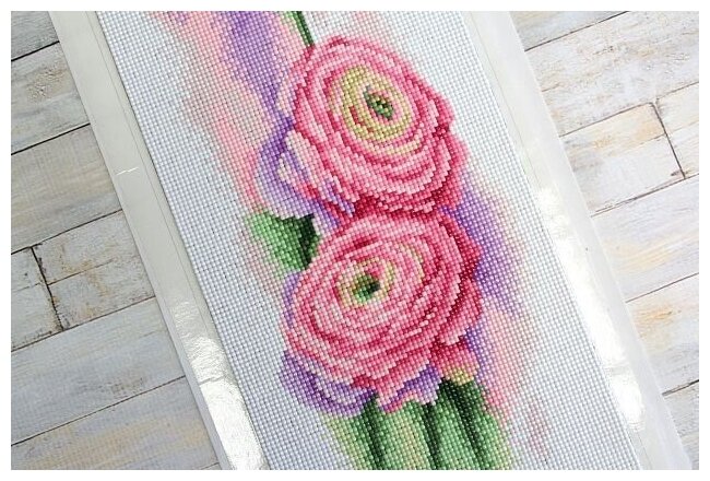 МС-135 Розовые ранункулюсы. Стразы Brilliart (размер: 19х48 см)