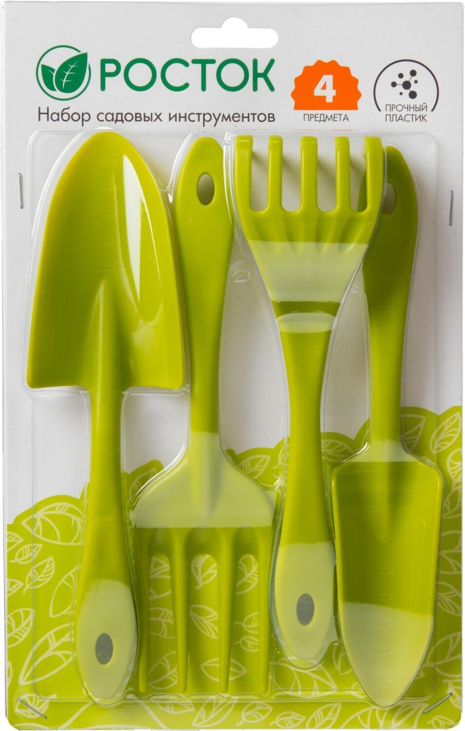 Набор садовый пластиковый Росток , предназначен для посадки растений, рыхления почвы и удаления сорняков. Выполнены из высококачественного прочного пластика. Эргономичная форма обеспечивает удобство эксплуатации. Каждый совок содержит шкалу глубины.