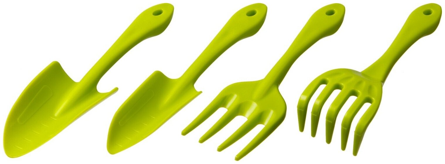 В наборе | вилка, грабли, узкий совок, широкий совок |
