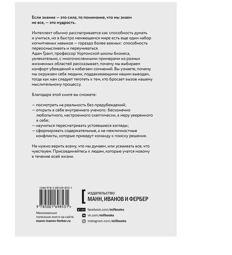 Адам Грант. Подумайте еще раз (Адам Грант); Манн, Иванов и Фербер, 2022