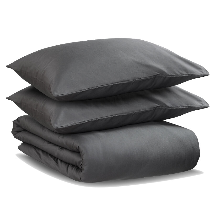 Глубокий серый цвет сатинового комплекта похож на оттенок черной жемчужины - такой же мягко блестящий и притягательный. Плотное плетение в 210ТС из 100% натурального хлопка очень приятно ощущается к телу - пожалуй, лучший выбор для спальни.