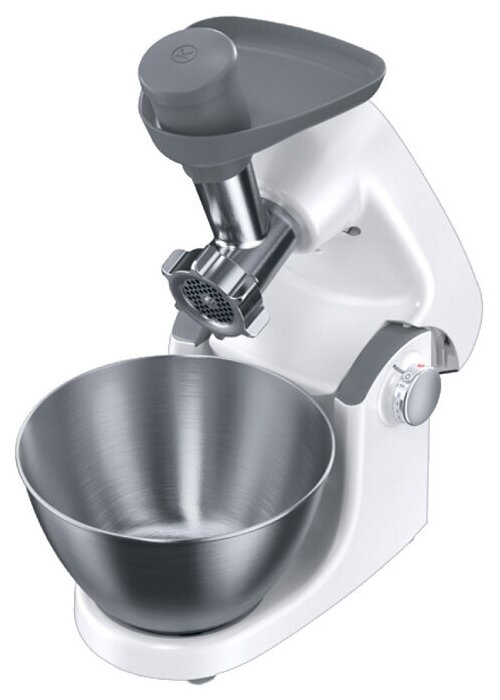 Купила в замен сломавшимся блендеру, миксеру, мясорубке. Эта машина все заменила, плюс ещё получила соковыжималку, и овощерезку. Тестомес прекрасный. Жмых у соковыжималки не очень сухой. Овощерезка отличная, овощи на борщ, на икру кабачковую моментально трутся. Мясорубка все рубит, боялась честно говоря, что мощности маловато- нет хватает.