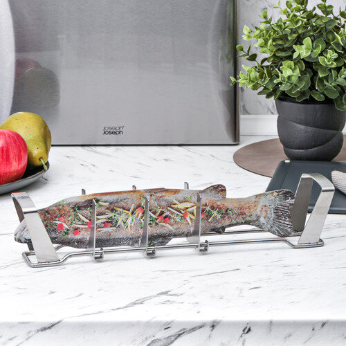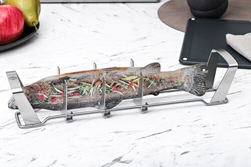 Гриль или запекание рыбы целиком стало намного удобнее с держателем для рыбы BBQ. Его направляющие опоры обеспечивают отличную фиксацию рыбы, которая в процессе запекания не меняет форму и структуру.