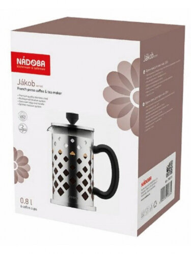 Френч-прессы Nadoba изготовлены из жаропрочного боросиликатного стекла. Уникальные свойства боросиликатного стекла объединяют в себе точность геометрических форм, особую стойкость к любым внешним воздействиям и повышенную прочность. Подстаканник из нержавеющей стали обеспечивает дополнительную термоизоляцию и предохраняет колбу от повреждений. Нержавеющая сталь также придаёт изделию особую прочность и устойчивость к воздействию кислот и щелочей. Удобная ручка френч-пресса не нагревается и не выскальзывает из рук. Многослойная система фильтрации препятствует попаданию мелких частичек в напиток и является разборной для удобного и качественного ухода за изделием.