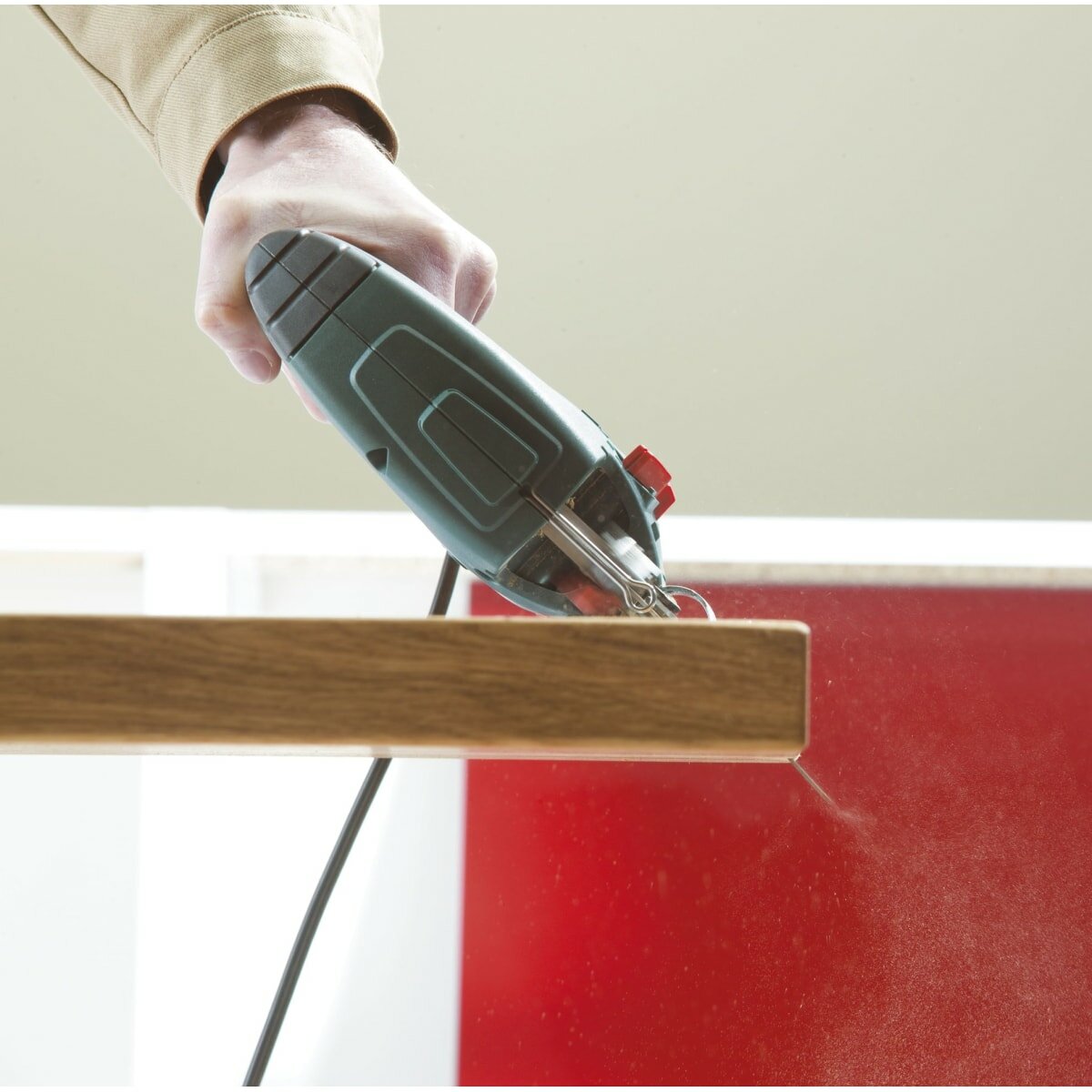 Точность реза достигается за счет низко расположенной направляющей пильного полотна. Бесключевая смена оснастки Metabo Quick и возможность подключения строительного пылесоса делают работу с электролобзиком комфортной.