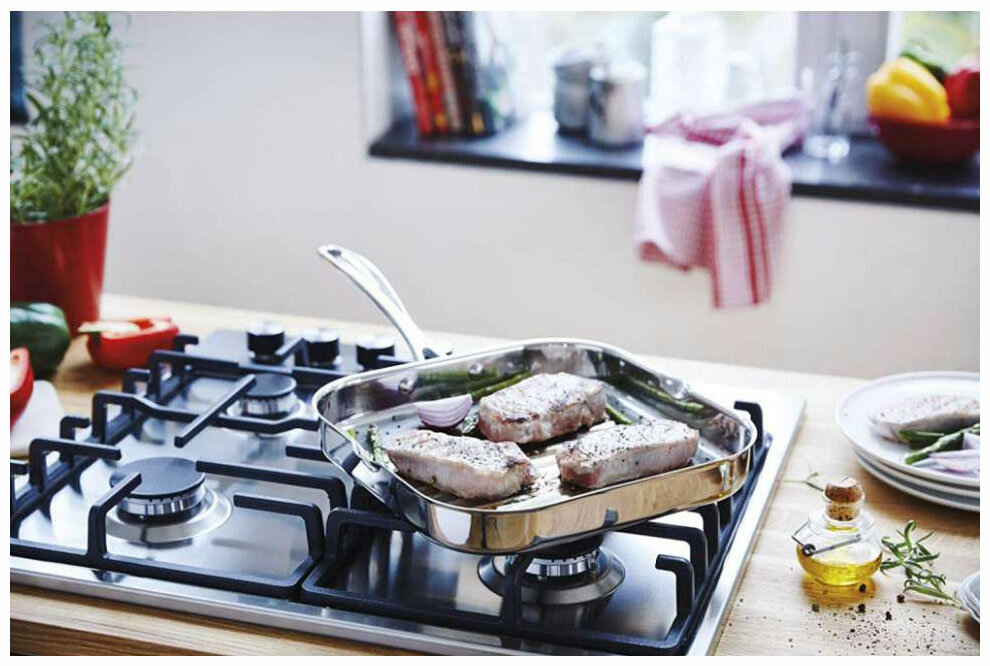 Совместимость: все типы варочных поверхностей, включая индукционные, а также духовка.