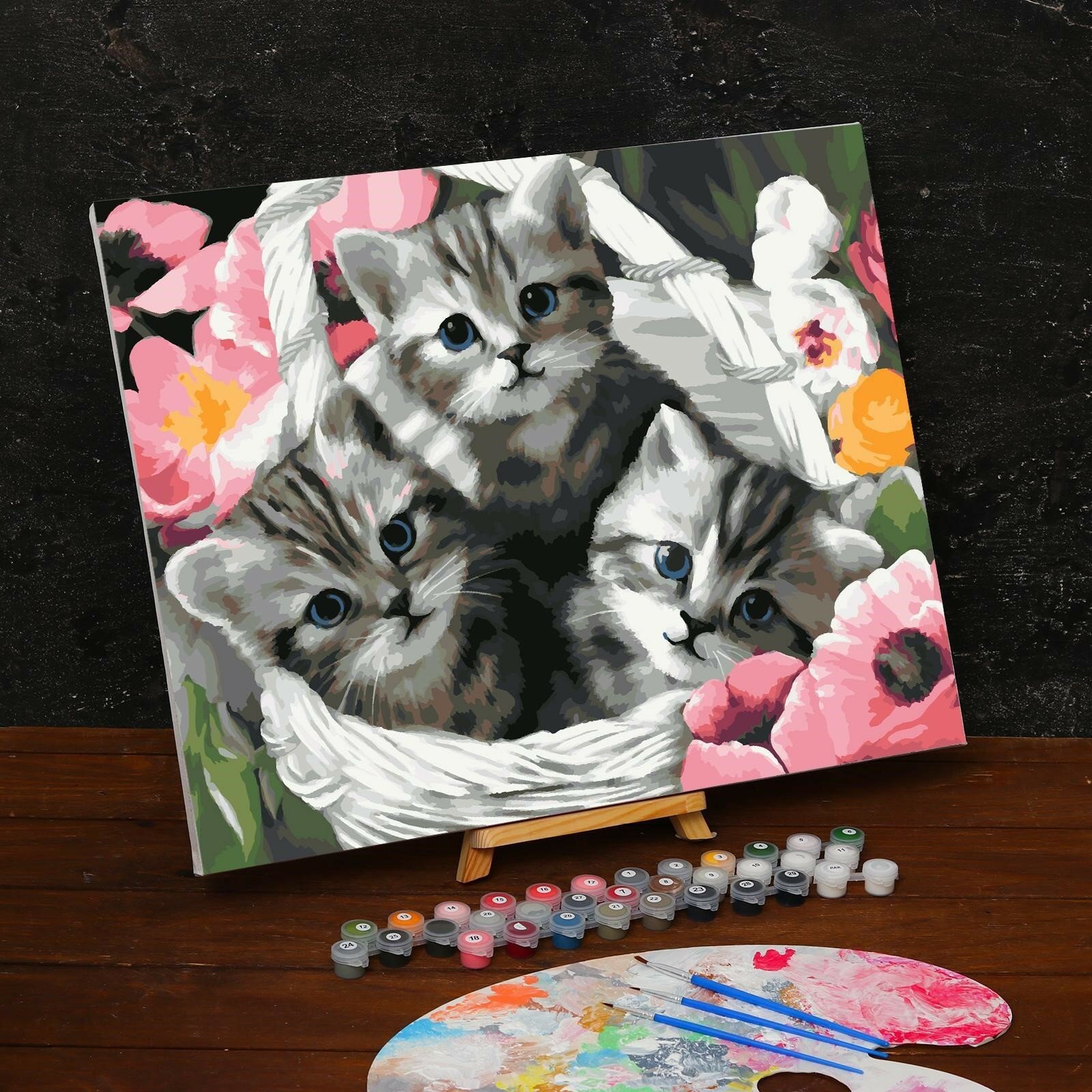 Картина по номерам на холсте с подрамником «Котята» 40х50 см понравится и детям, и взрослым.