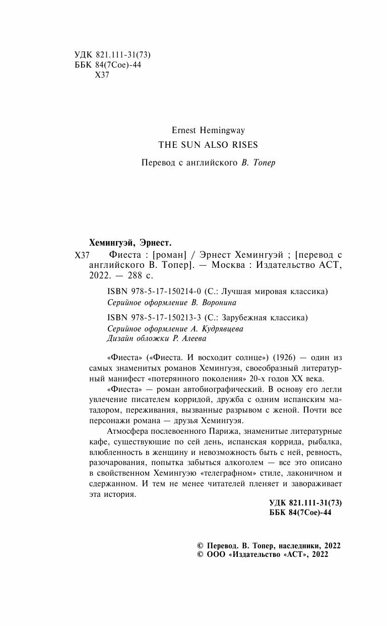 Книга: Фиеста (Эрнест Миллер Хемингуэй); ООО "Издательство Астрель", 2022