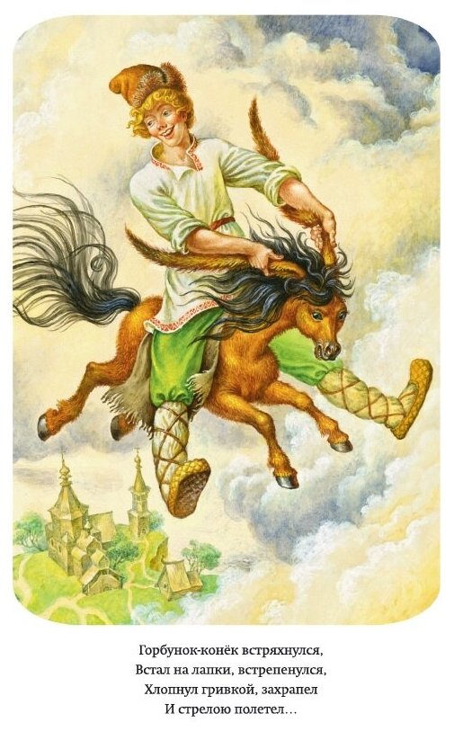 Мне самой очень нравится сказка Петра Ершова "Конёк-горбунок", но когда искала книгу для ребёнка, основной критерий выбора был иллюстрации Игоря Егунова. Книги под его оформлением - это отдельный вид искусства: все картинки яркие, полны деталей, их хочется рассматривать и рассматривать. И вся книга это одна большая иллюстрация, текста на страницах не так много, но ребенку это только помогает читать.