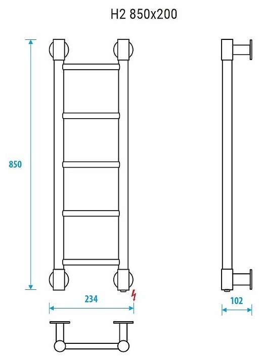 Электрический полотенцесушитель Energy H2 850x200 EETR0000H2852000000.