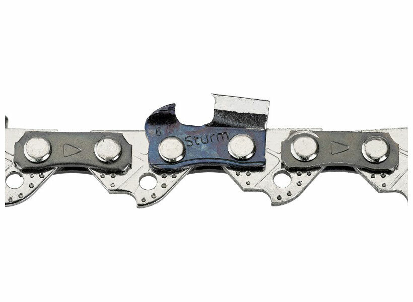 Предназначена к использованию с бензопилами Sturm соответствующих параметров. Подходит для валки деревьев, распиловки дров, ухода за деревьями и кустарниками в саду. Цепь выполнена из современных материалов, оснащена круглыми хромированными калеными зубьями, что способствует улучшению линии реза, скорости пиления и долговечности цепи. Цепь. звеньев - 56. паз 0,050", шаг 3/8", квадратный хромированный, каленый зуб