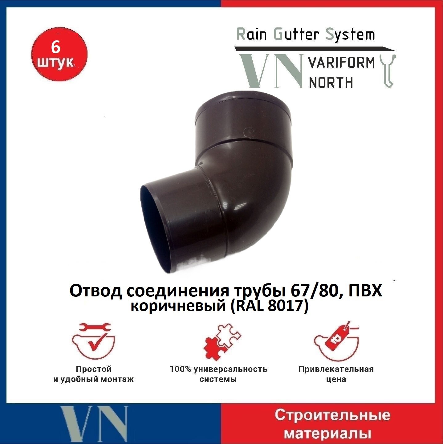 Отвод соединения трубы 67/80 торговой марки Murol устанавливается для соединения между водосточными трубами и муфтой труб под 67 градусов. Удобный вариант для поворота трубы от воронки к стене здания. Цвет коричневый. Поставляется в количестве 6 штук.