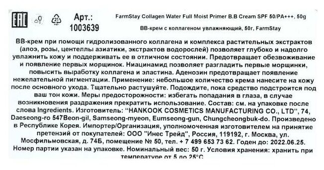 | Коллекция | FarmStay Collagen Water Full Moist Primer B.B Cream |