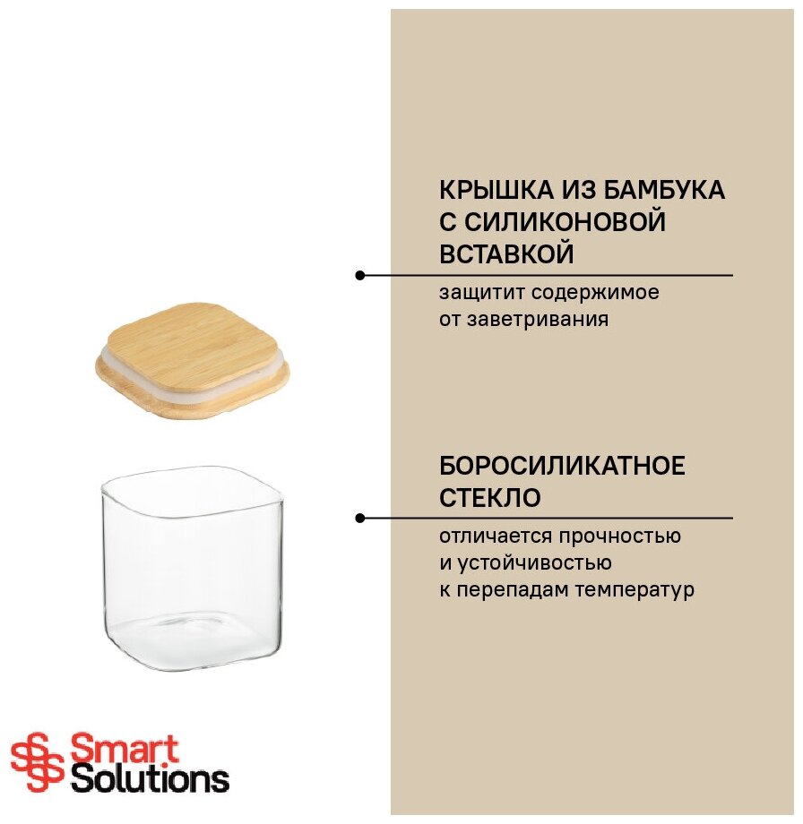 Банка для хранения smart solutions с крышкой из бамбука 800 мл (GZ800SQ)