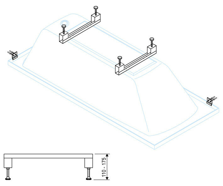 В случае установки передней панели, или передней и боковой панелей, используется установочный комплект для 2-х панелей прямоугольной акриловой ванны CZR-SCR-FIX-KIT.