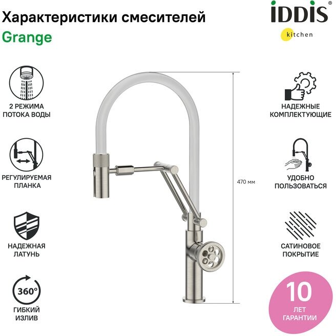 Смеситель Iddis Grange для кухонной мойки сатин GRABNFLi05