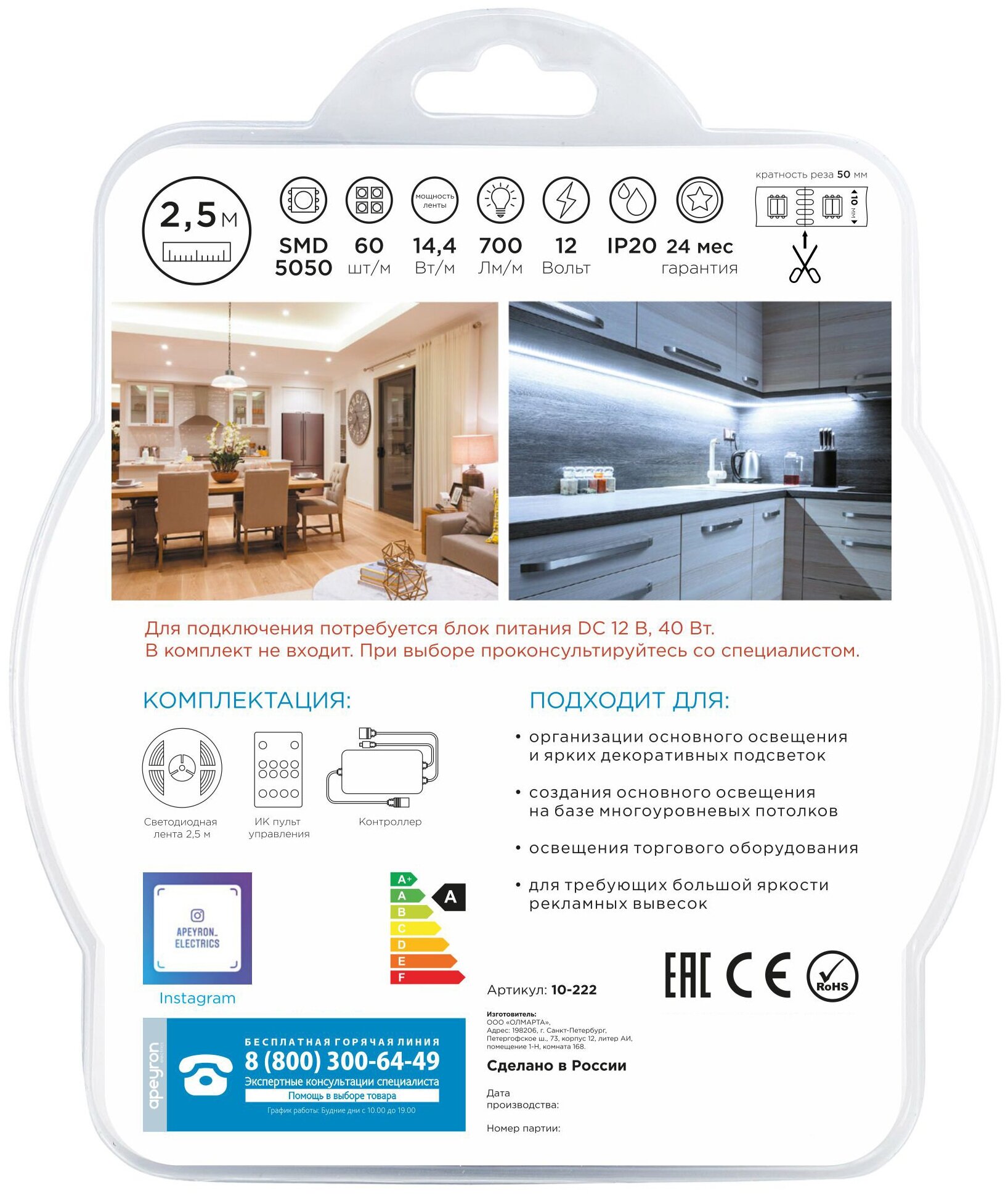 Комплект светодиодная лента 2,5 метра led Apeyron трехцветная: холодный белый, теплый белый, дневной белый свет подойдет для организации внутреннего основного и акцентного освещения жилых и коммерческих помещений, например, кухни, гостиной, ТВ-подсветки, спальни, кабинета или витрины магазина, бутика.Светодиодная лента многоцветная имеет диапазон цветовых температур от 3000К до 6500К, что позволяет создавать различные световые сценарии благодаря диодной ленте 3 в 1. Она подойдет для создания основного освещения на базе многоуровневых потолков, а также будет отличным выбором для освещения торгового оборудования или требующих большой яркости рекламных вывесок.Подсветка ленты имеет несколько режимов, которые переключаются с помощью специального пульта (идет в комплекте). Степень защиты светодиодной ленты соответствует стандарту IP20, что подразумевает использование только в сухих и проветриваемых помещениях.Данную ленту также ищут как: светодиодные ленты для телевизора, светодиодные ленты на телевизор, лента светодиодная на телевизор, светодиодная лента на тв, подсветка лента, лента светодиодная 12 В, led лента, светодиодная лента с пультом, неоновая лента, диодная лента, подсветка для комнаты, светодиодная подсветка, диодная лента для кухни, комплект для светодиодной подсветки, светодиодная лента синяя, светодиодная лента белая, светодиодная лента желтая, светодиодная лента rgb, лента apeyron, подсветка комнаты, диодная лента на кухню, световая лента.