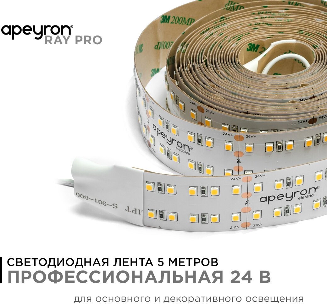 Светодиодная лента Apeyron 42W/m 240 диодов/3м 2835SMD дневной белый 5M 00-316