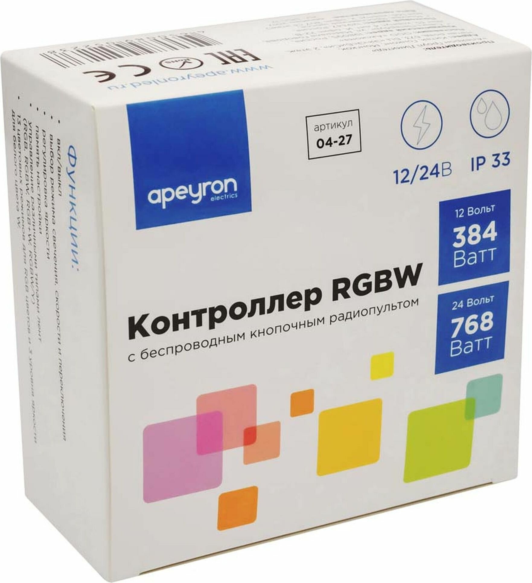 Контроллер RGBW Apeyron с пультом 12/24V 04-29