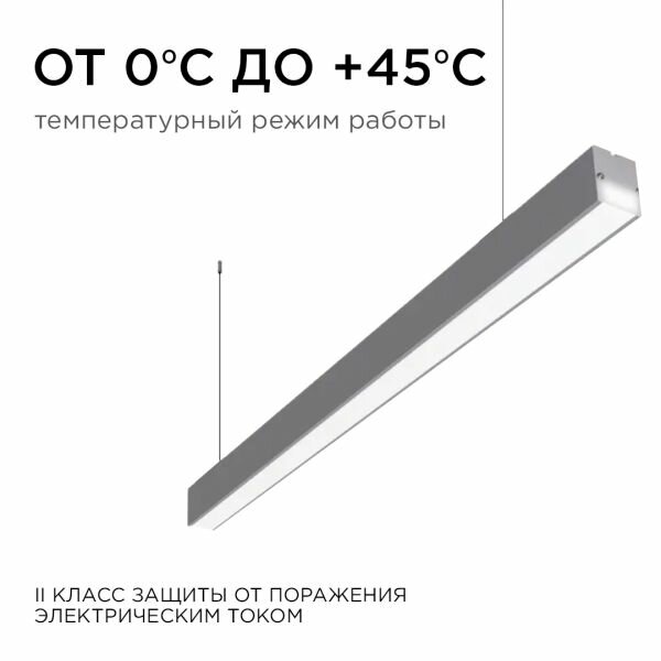 **Профильный светильник светодиодный подвесной ** используется в качестве основного или дополнительного источника света. Подходит для гаража, офиса, общественных помещений. Исключение — комнаты с повышенной влажностью. Работает от сети переменного тока.