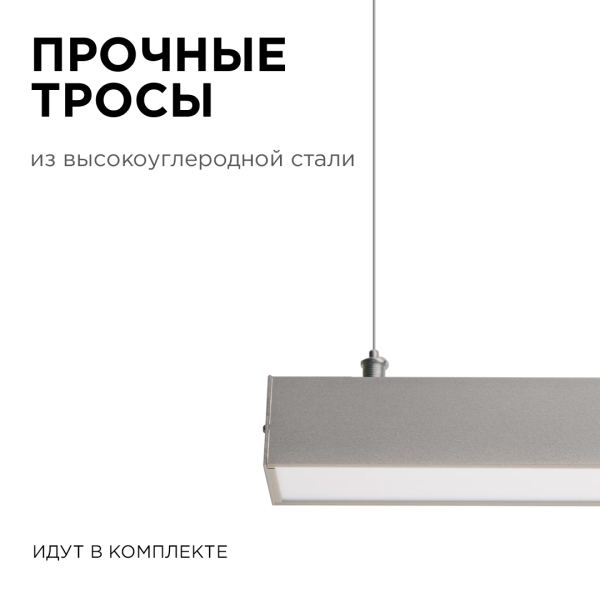 | Состав комплекта | Светильник — 1 шт. Система подвеса (в комплекте) — 1 шт. - саморез и дюбель — 4 шт. - трос — 2 шт. - цанговый зажим — 2 шт. - потолочная чашка, потолочный фитинг (устанавливается по выбору) — 2 шт. - резьбовая втулка — 2 шт. - гайка — 2 шт. Упаковка — 1 шт. Инструкция по установке и эксплуатации — 1 шт |