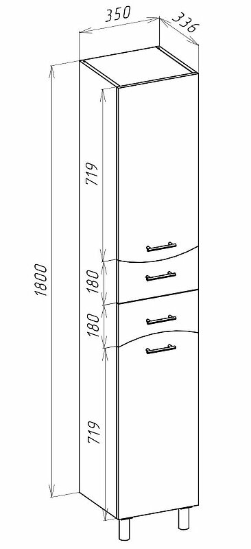 - Размеры (ШхВхГ): 350х1900х336 мм.