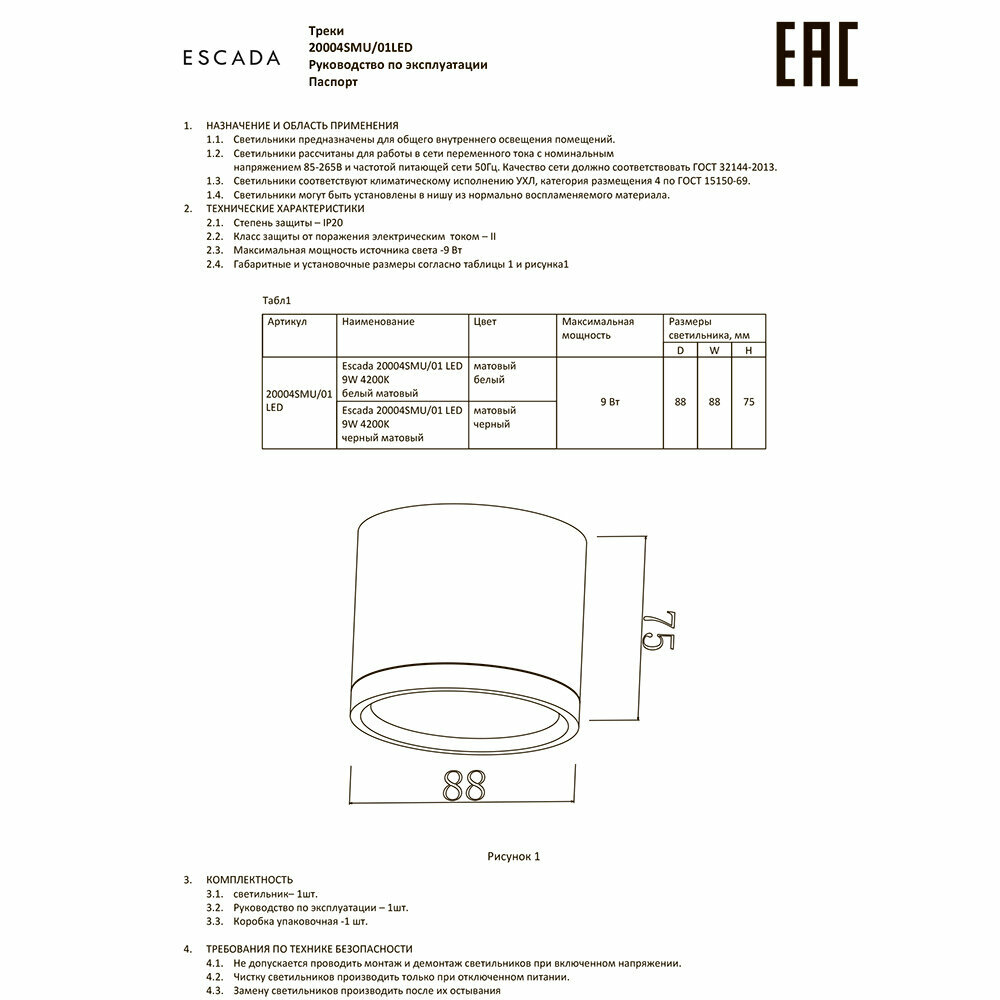Накладной светильник светодиодный 20004 - продукт известной компании Escada (Китай). Имеет максимальную мощность 9 Вт, освещает площадь до 2 кв. м. Отлично подойдет для таких мест, как гостиная, прихожая и коридор, кафе, спальня, кухня, офис, магазин. Впишется в интерьеры следующих стилей: модерн.