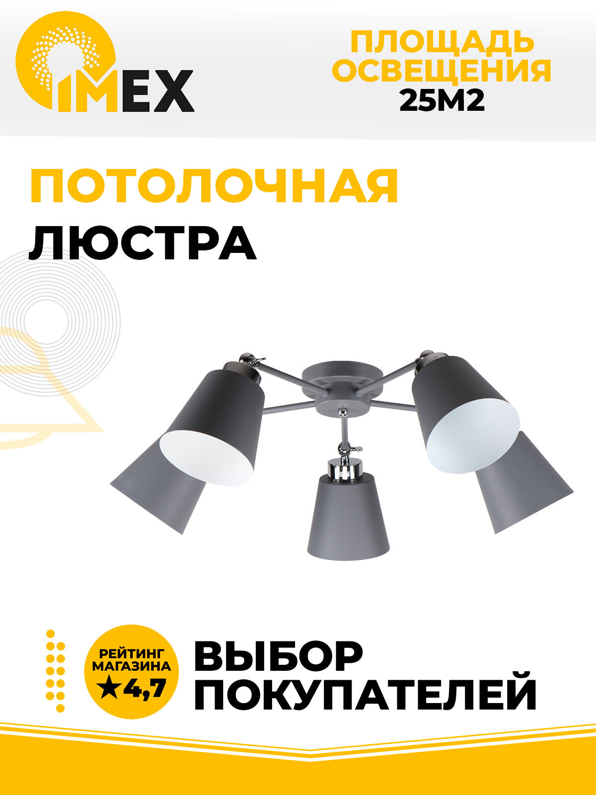 На сегодняшний день товар «Потолочная люстра IMEX MD.9103-5-S GR+CH» можно купить с кешбеком в 2 магазинах: donplafon, Яндекс.Маркет