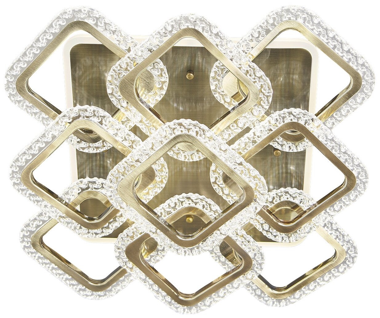 **Люстра потолочная светодиодная Escada ** подходит для помещений общей площадью до 26 м². Основание светильника изготовлено из металла с покрытием золотистого цвета. Плафоны изготовлены в форме квадратов с одной линией свечения. Благодаря небольшой высоте люстру можно устанавливать на натяжные и низкие потолки. Температура цвета варьируется в пределах от 3000 до 6000 К, мощность светового потока — 6750 Лм.