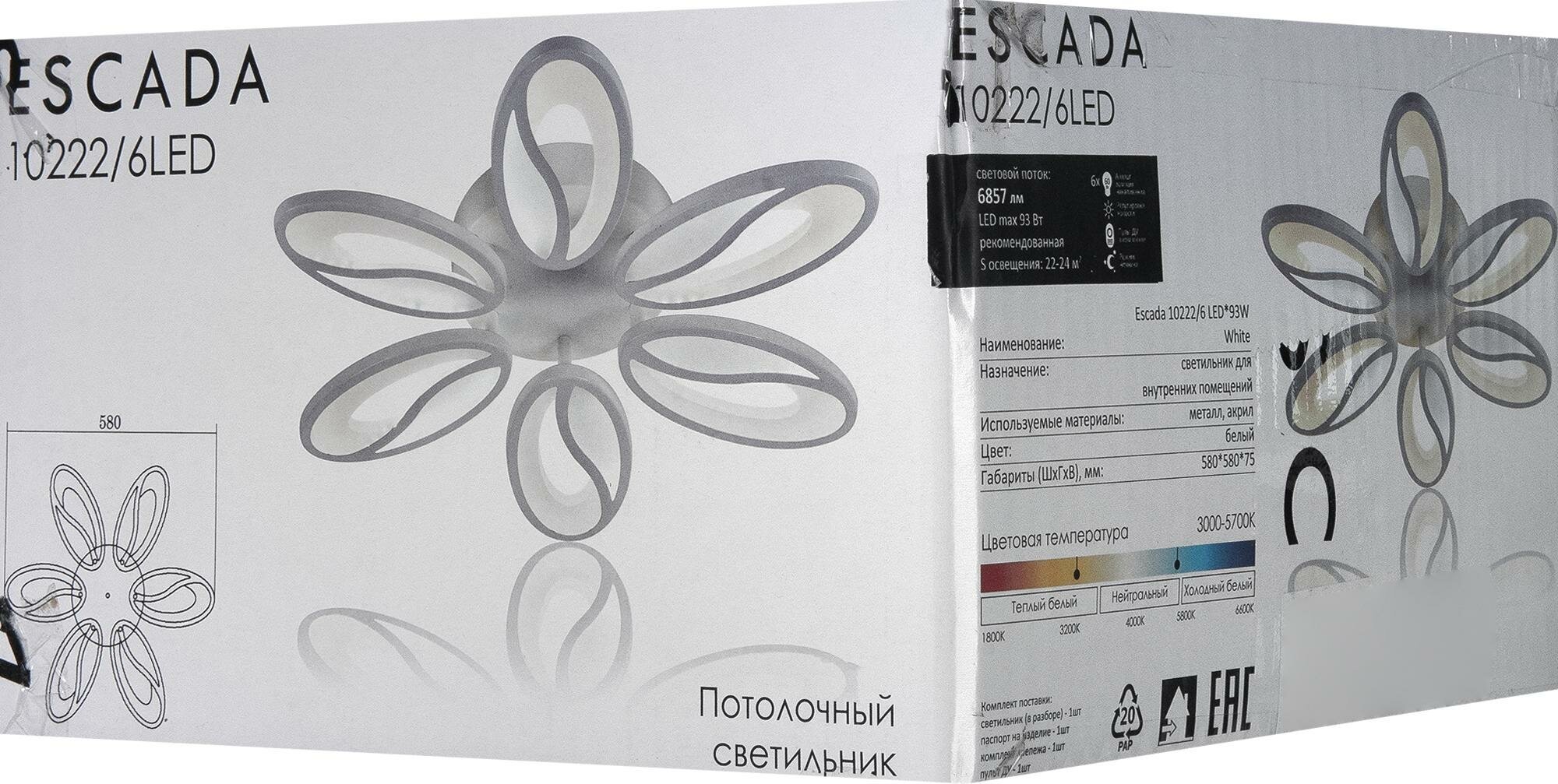 Люстра потолочная светодиодная Grain 10222/6 LED*115W White - продукт известной компании Escada (Китай). Имеет максимальную мощность 115 Вт, освещает площадь до 40 кв. м. Отлично подойдет для таких мест, как гостиная, прихожая и коридор, кафе, спальня. Впишется в интерьеры следующих стилей: современный.