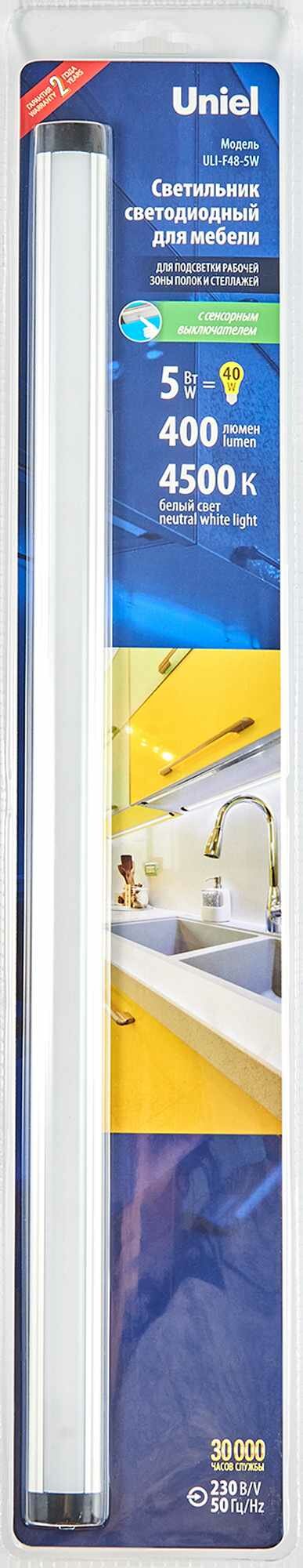 Мебельный светодиодный светильник Uniel UL-00008287 ULI-F48-5W/4500K Sensor IP20 Silver
